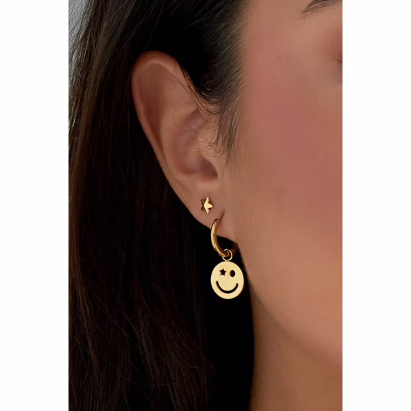 Laat je dag stralen met de Be Happy Smile oorbellen, een subtiel en speels accessoire dat elke outfit direct een positieve touch geeft! Deze goudkleurige oorbellen met een smiley design zijn gemaakt van duurzaam roestvrij staal, zodat ze lang mooi blijven en niet snel verkleuren. Ideaal voor dagelijks dragen.
